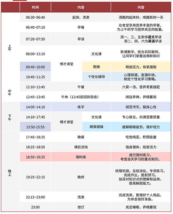 从学习和生活细节入手,定期开展活动,每天贴心呵护,关爱学生身心,提升学习质量。心理咨询师每月都会给学生上课,每周有励志活动,让学生持续有动力,帮助学生找到真正推动自己前进的梦想,让学生学会心态管理,帮助学生做到心无杂念,一心为学习。