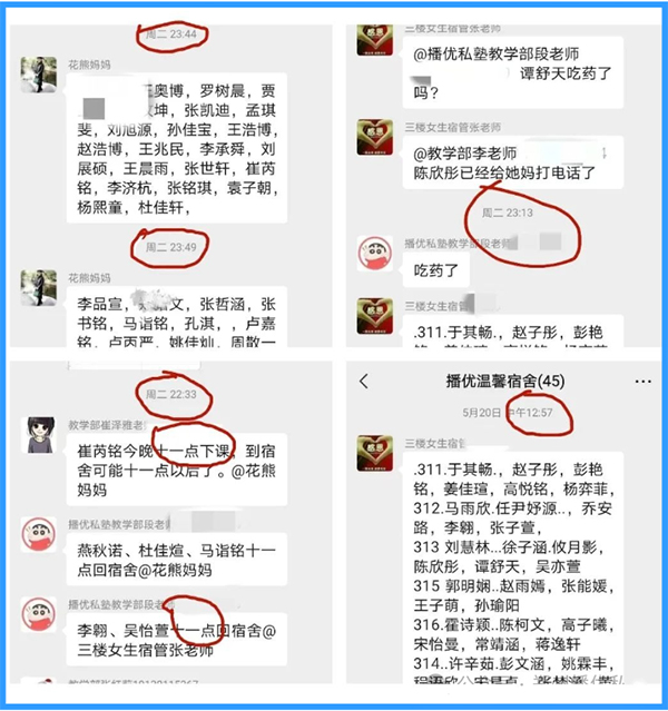 每天中午、晚上下课各班班主任老师会把回宿舍和留班学习学生名单提前报群上,中午12:50及晚上23:00宿管老师和教学区值班老师同时核对学生名单,确保宿舍、教学区做到管理无缝衔接,确保每一个孩子平安且随时可追踪。学校安心,家长放心,孩子静心。