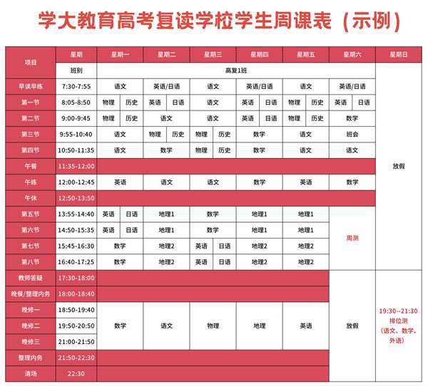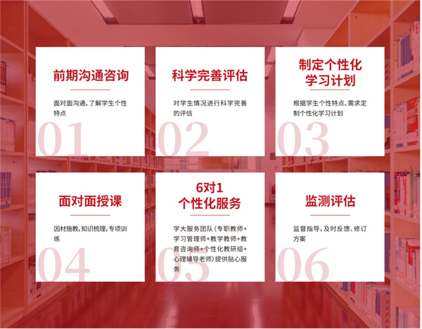佛山学大中高考复读学校专注于提供无干扰、无顾虑、无隐患的学习环境,根据学生实际情况全程安排个性化的教学进度和授课内容,使学生获得高效的学习体验,助力顺利升入理想的本科学校。