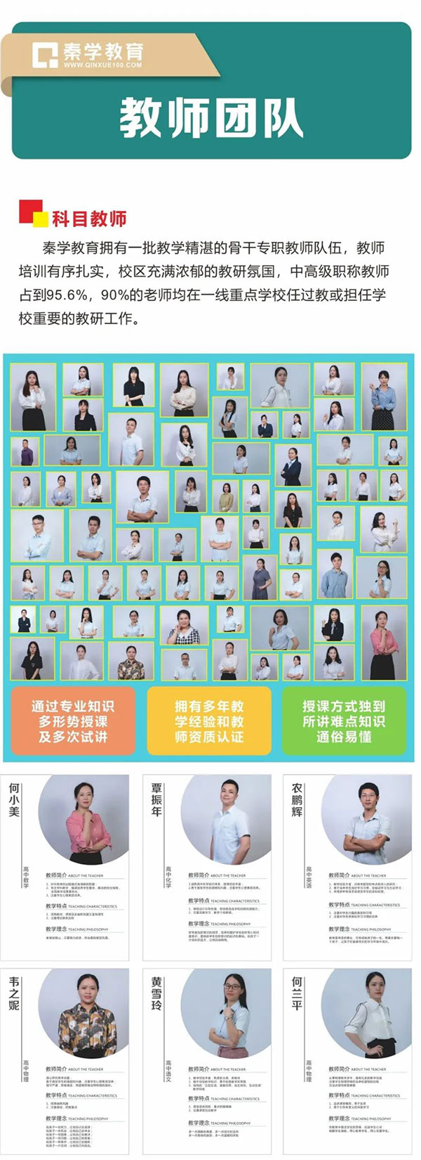 1.专注中高考补习,经验丰富,拥有大量的中高考命题研究经验、学生类型经验、知识体系分层经验、课堂教学经验、学生管理经验、沟通经验、知识点细分经验,秦学教育补习学校更懂中高考更懂教育。专注中高考,拒绝涉猎各类跨领域或培训的“博而不精”模式,因专一而专业。