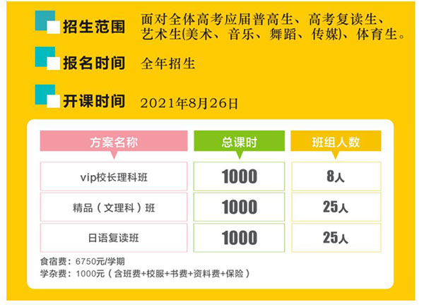 2.采用小班式教学(20-25人/班)精细化的个性服务,学科老师全天候教学、陪读,班主任全天做好学生心理、学习状况、目标规划、时间管理等方面的服务。**各教学环节的开展能照顾到每位学生,做到对每位学生的知识掌握情况了如指掌。