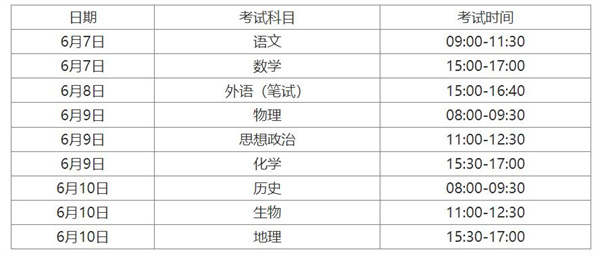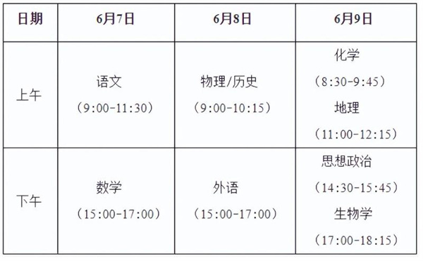 2024年高考是6月7日、6月8日、6月9日这3天。2024年高考全国统考将于6月7日开始举行,具体科目考试时间安排为6月7日9:00至11:30语文;15:00至17:00数学。6月8日9:00至11:30文科综合/理科综合;15:00至17:00外语,有外语听力测试内容的一般应安排在外语笔试考试开始前进行。